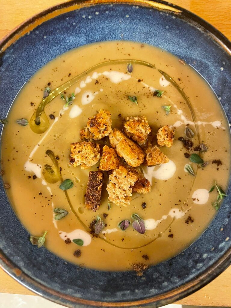 - Chestnut, Parsnip & Thyme Velouté with Truffle Oil Drizzle